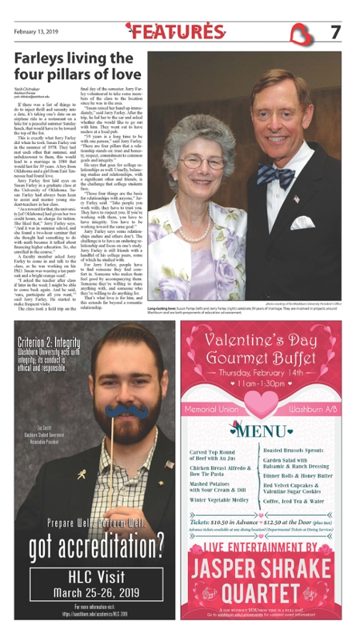 - Dr. Farley, president of Washburn University, emailed all students, faculty, and staff on both campuses with an overview of the HLC accreditation process and encouraged everyone to engage in the review process.